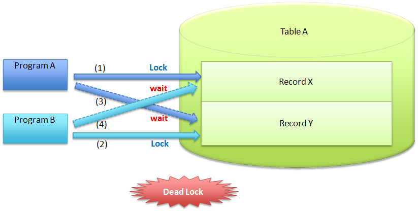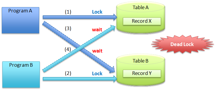 仮にProgram AもProgram BもTable Aから更新するというルールに準じていれば、上記テーブル間でのデッドロックの図のような、デッドロックは発生しなくなる。