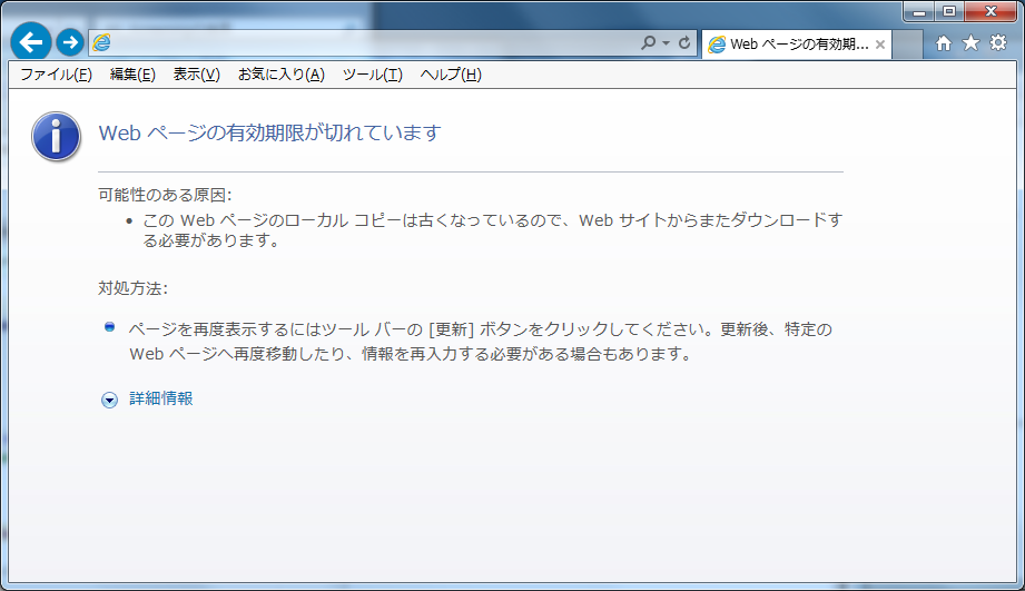 HTTPレスポンスヘッダのCache-Controlの設定により、ブラウザキャッシュが無効になっている場合は、「トランザクショントークンチェックについて」の想定外の操作を行った際に、トランザクショントークンエラーが発生する前にWebブラウザの有効期限切れメッセージが表示される。