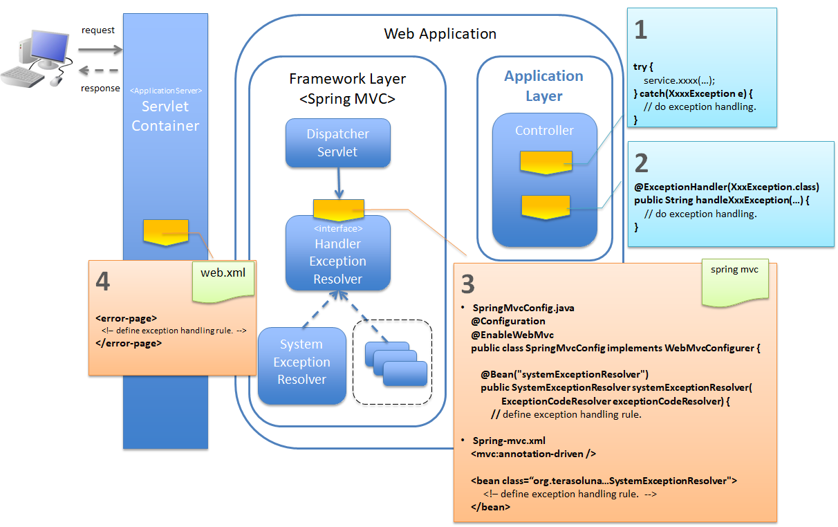 @Bean("systemExceptionResolver") public SystemExceptionResolver systemExceptionResolver( ExceptionCodeResolver exceptionCodeResolver) { // omitted bean.setExceptionCodeAttribute(exceptionCodeForExceptionResolver()); // (1)