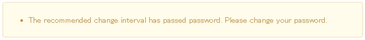 処理は継続できるが、注意喚起が必要な状態である場合に表示するメッセージ。(例:パスワード有効期限切れが近い場合の通知メッセージ) |