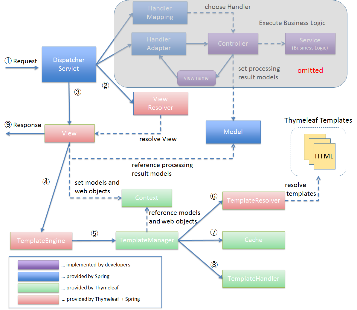 4.1.1.3.1. Thymeleaf + Springを適用した処理フロー¶