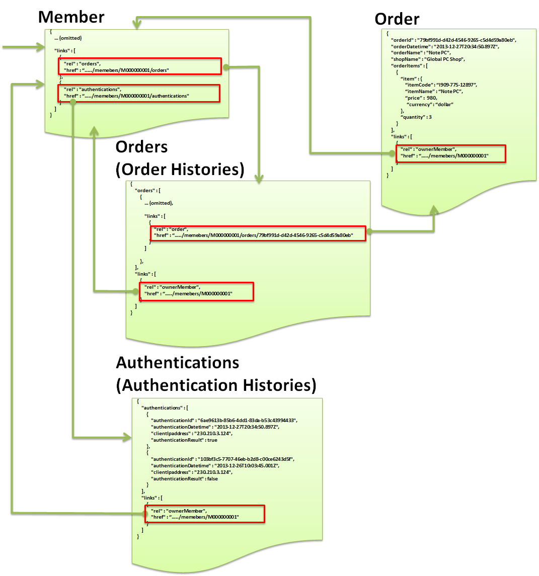 (6) サーバ上でアプリケーションの状態は保持せずに、クライアントからリクエストされてきた情報のみで処理を行うようにする。 (7) リソースの中には、指定されたリソースと関連をもつ他のリソースへのリンク(URI)を含める。
