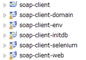 クライアントを作成する場合、従来のマルチプロジェクトにSOAPサーバから提供されるmodelプロジェクトとwebserviceプロジェクトを追加する。
