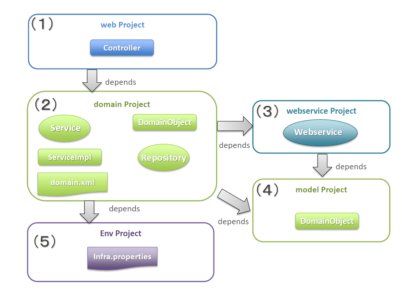 本ガイドラインでは、マルチプロジェクトで以下のような構成を用いる。