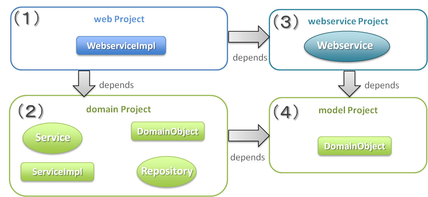 [client projectName]-webについては、通常のwebプロジェクトと変わらないため、「アプリケーションのレイヤ化 の プロジェクト構成」を参照されたい。
