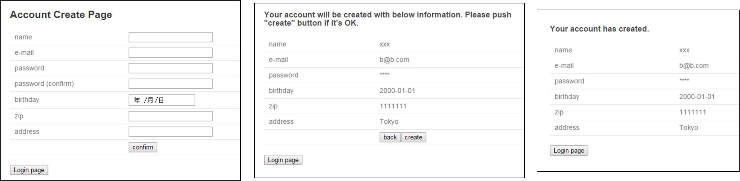 本アプリケーションではアカウント作成と更新でユースケースが分かれるため、それぞれ /account/create, /account/update というURLとする。