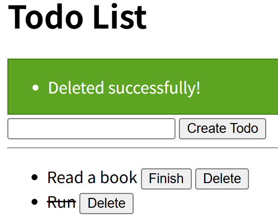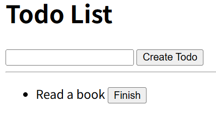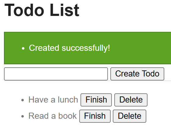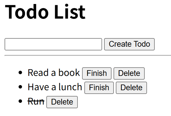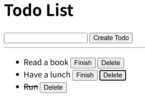 未完了のTODOに対しては「Finish」と「Delete」用のボタンが付く