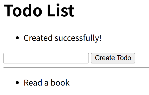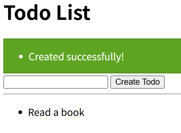 処理が成功した場合は、遷移先の画面で「Created successfully!」を表示する