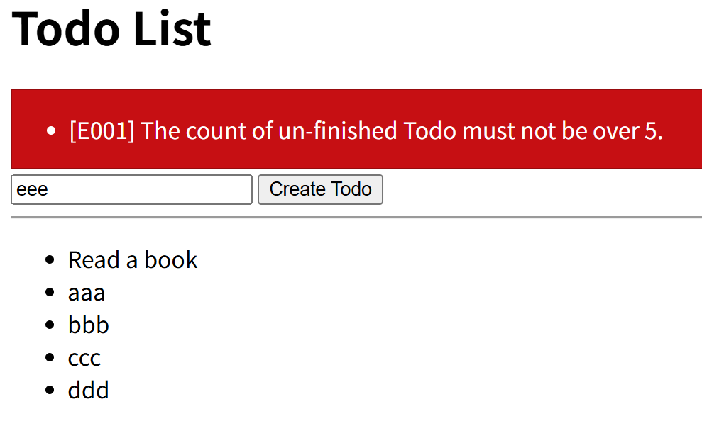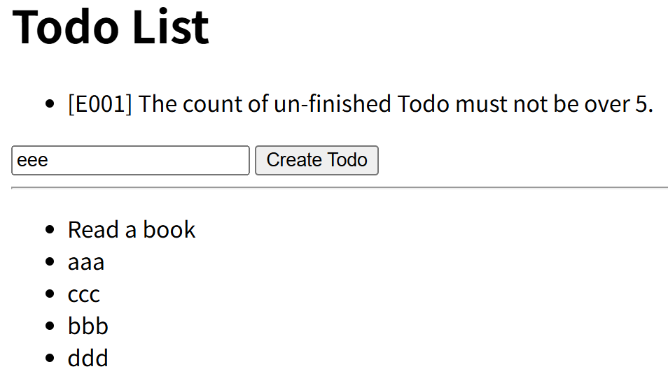 [E001] The count of un-finished Todo must not be over {0}. |